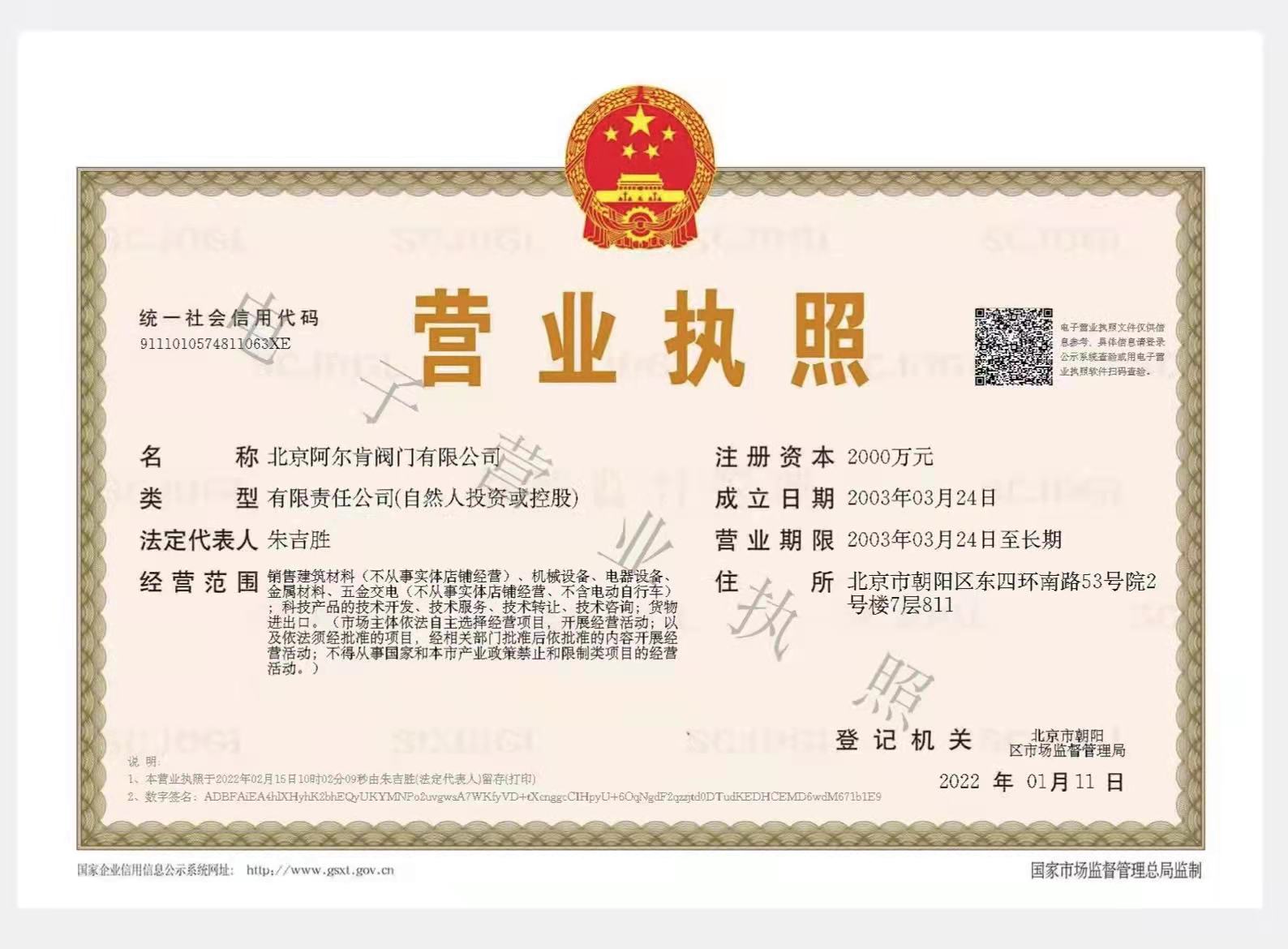 北京阿爾肯閥門有限公司(營(yíng)業(yè)執(zhí)照)